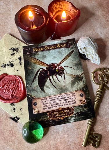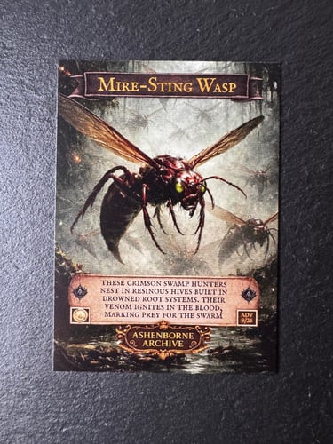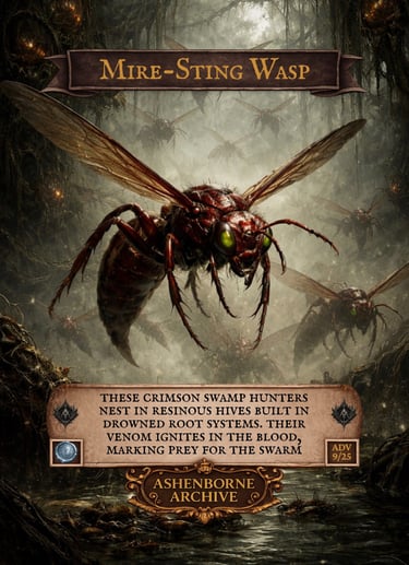 In the deeper bogs of AshenReach, the Mire-Sting Wasp is less a creature than a warning: where the air hums with their wings, the mire itself is already hungry.