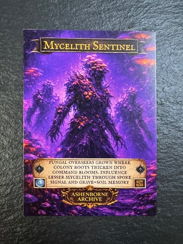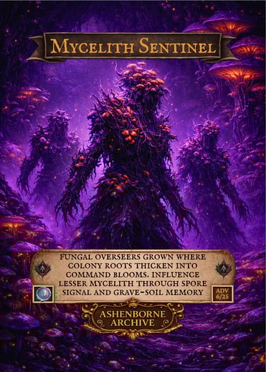 Mycelith Sentinels are living fungal lieutenants grown within the deeper colonies of the Mycelith.