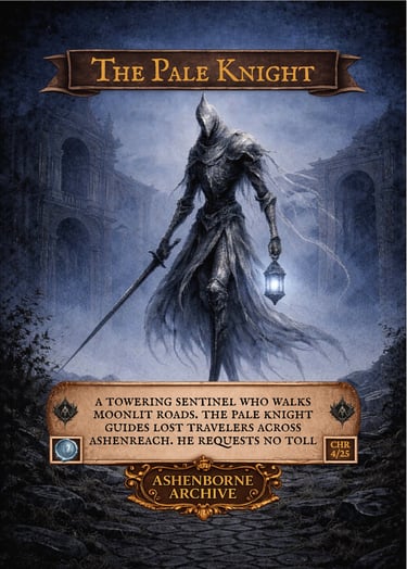 The Pale Knight is a towering armored figure said to wander the long roads of AshenReach.